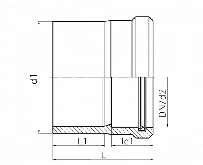 Art. No. | DN [mm] | d1 [mm] | d2 [mm] | le1 [mm] | L [mm] | L1 [mm] | z1 [mm] | kg |