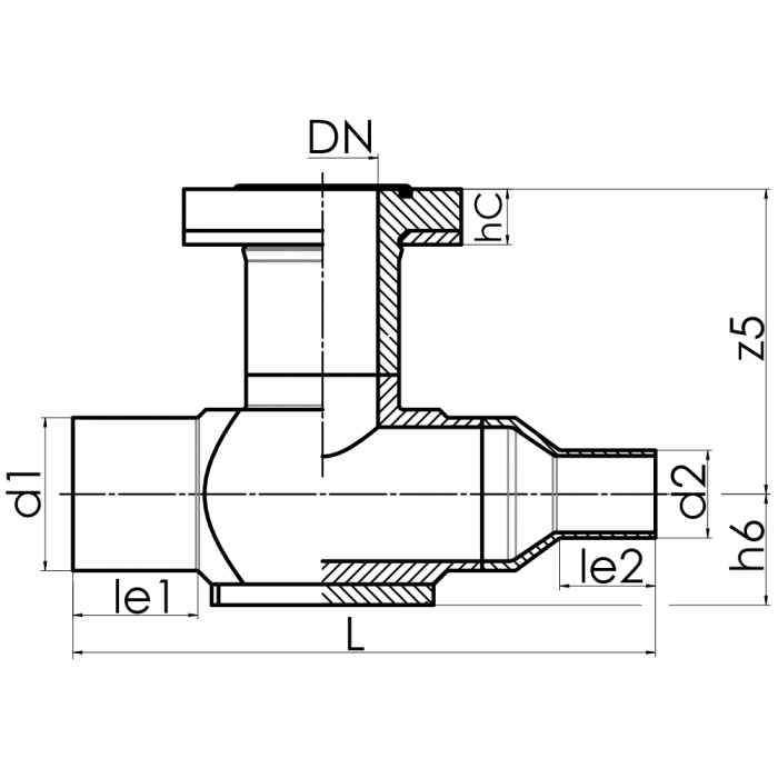 Art. No. | DN [mm] | d1 [mm] | d2 [mm] | le1 [mm] | le2 [mm] | L [mm] | z5 [mm] | hC [mm] | kg |