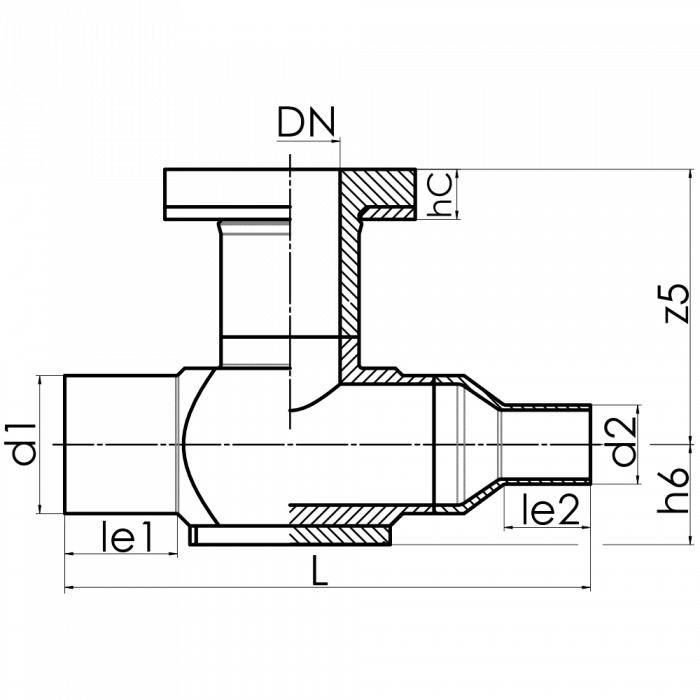 Art. No. | DN [mm] | d1 [mm] | d2 [mm] | le1 [mm] | le1* [mm] | le2 [mm] | L [mm] | z1 [mm] | z5 [mm] | hC [mm] | kg |