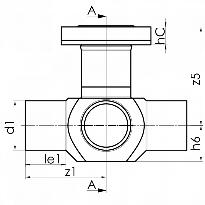 Art. No. | DN [mm] | d1 [mm] | d2 [mm] | le1 [mm] | le2 [mm] | z1 [mm] | z2 [mm] | h6 [mm] | z5 [mm] | hC [mm] | kg |
