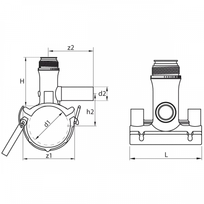 Art. No. | d1 [mm] | d2 [mm] | L [mm] | z2 [mm] | H [mm] | h2 [mm] | VE | kg |